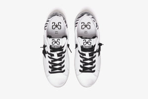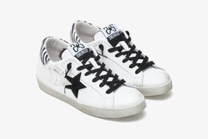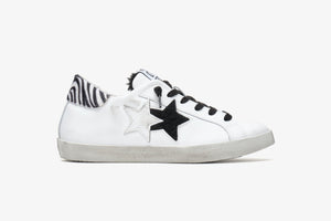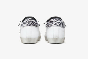 SNEAKER LOW IN PELLE BIANCA CON DETTAGLI ZEBRATI ED ECOFUR NERO CON EFFETTO "USED"
