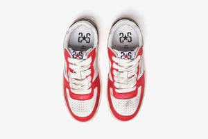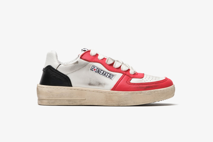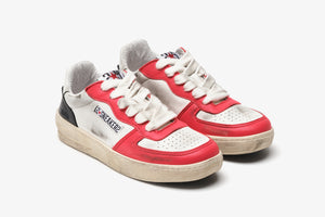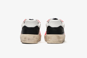 SNEAKER PADEL IN PELLE BIANCA CON DETTAGLI ROSSI E NERI ED EFFETTO "USED"