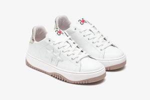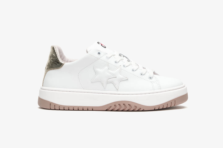 SNEAKER STREET STAR IN PELLE BIANCA CON DETTAGLIO LAMINATO ORO