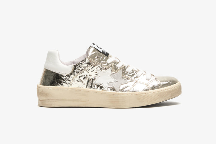 SNEAKER WALK STAR IN PELLE LAMINATA PLATINO CON DETTAGLI BIANCHI E GHIACCIO