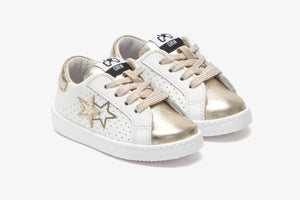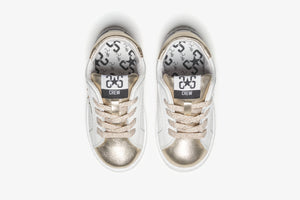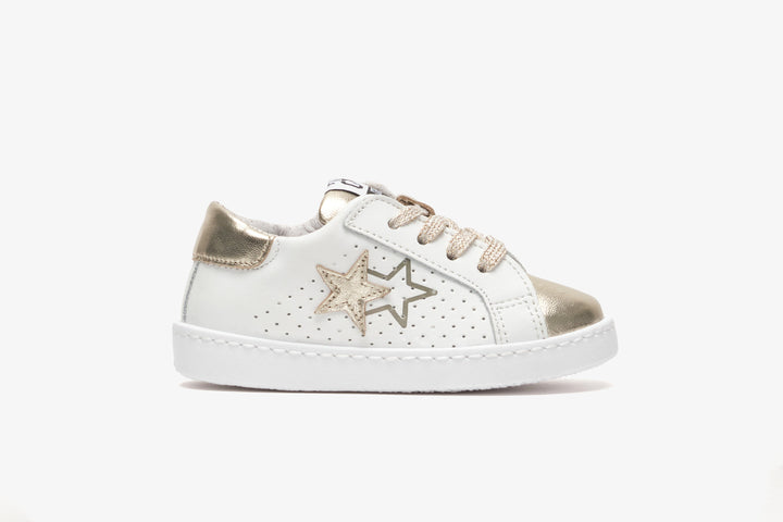 SNEAKERS LOW IN PELLE BIANCA CON DETTAGLI IN PELLE LAMINATA DORATA