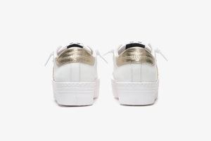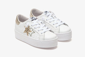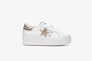 SNEAKERS LITTLE PLAT IN PELLE BIANCA CON DETTAGLI GLITTER DORATO